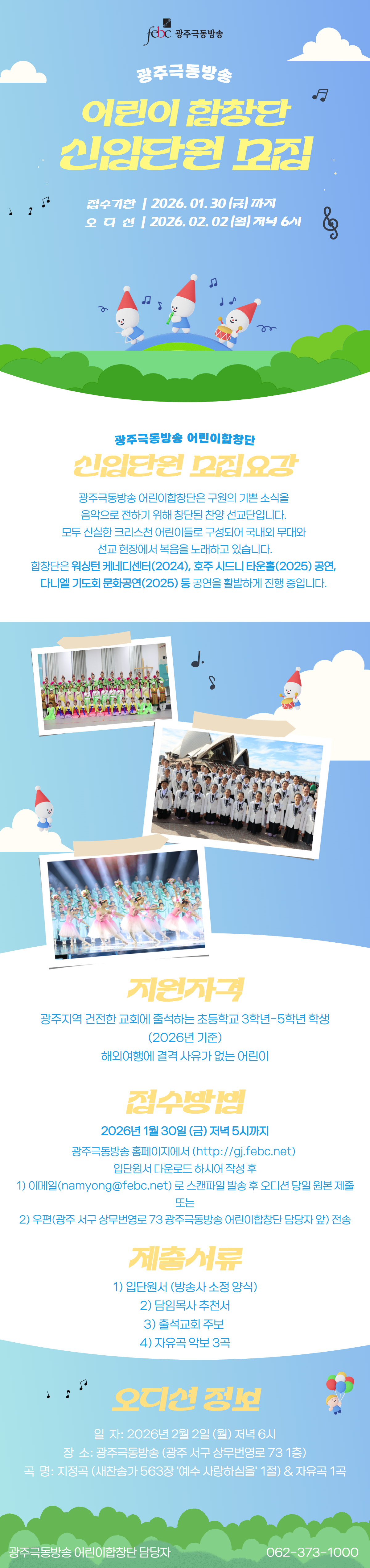2026 광주극동방송 어린이합창단 신입단원 모집