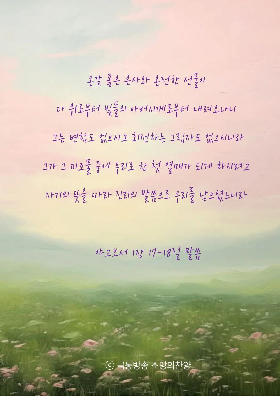 야고보서 1장 17절과 18절 말씀을 함께 묵상해봅니다.
