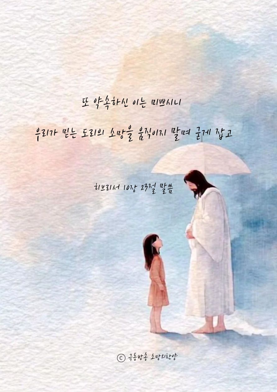 “또 약속하신 이는 미쁘시니 우리가 믿는 도리의 소망을 움직이지 말며 굳게 잡고.”