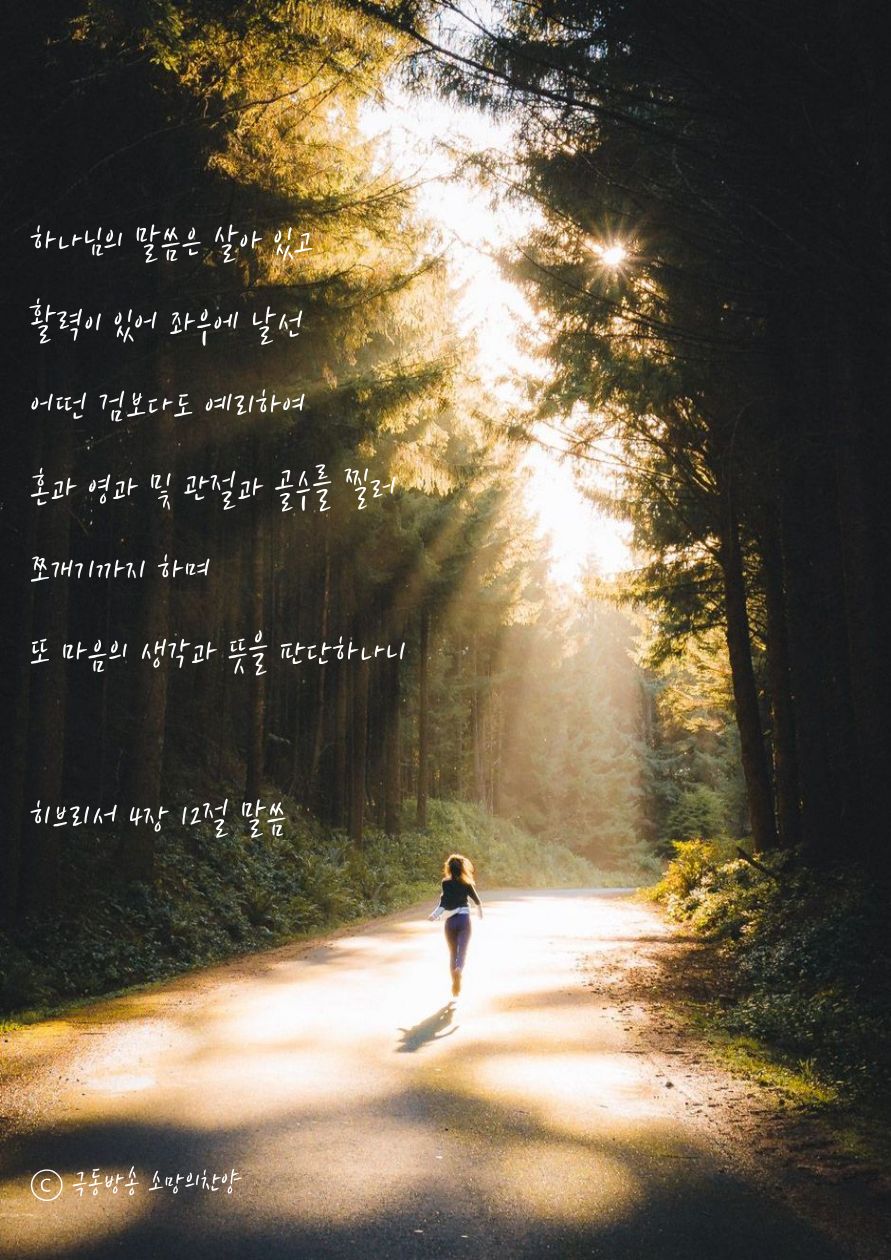 하나님의 말씀은 살아 있고 활력이 있어 좌우에 날선 어떤 검보다도 예리하여