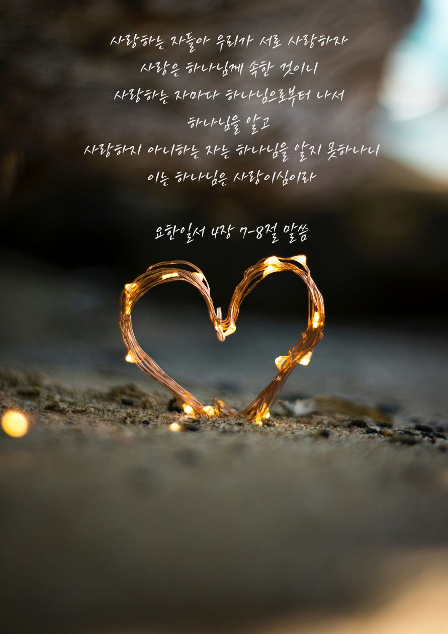 하나님이 우리를 먼저 사랑하셨기에, 그 사랑을 힘입어 우리도 다시 사랑하기로 결단할 수 있기를 소망해 봅니다.