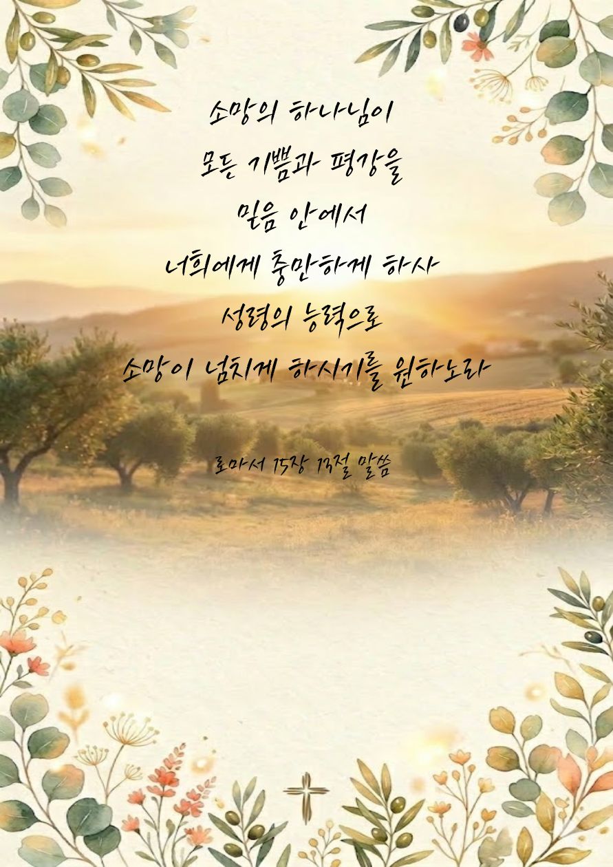 "소망의 하나님이 모든 기쁨과 평강을 믿음 안에서 너희에게 충만하게 하사