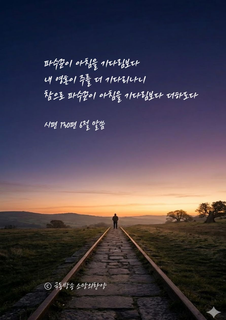 "내 영혼이 주를 기다림이 파수꾼이 아침을 기다림보다 더하니