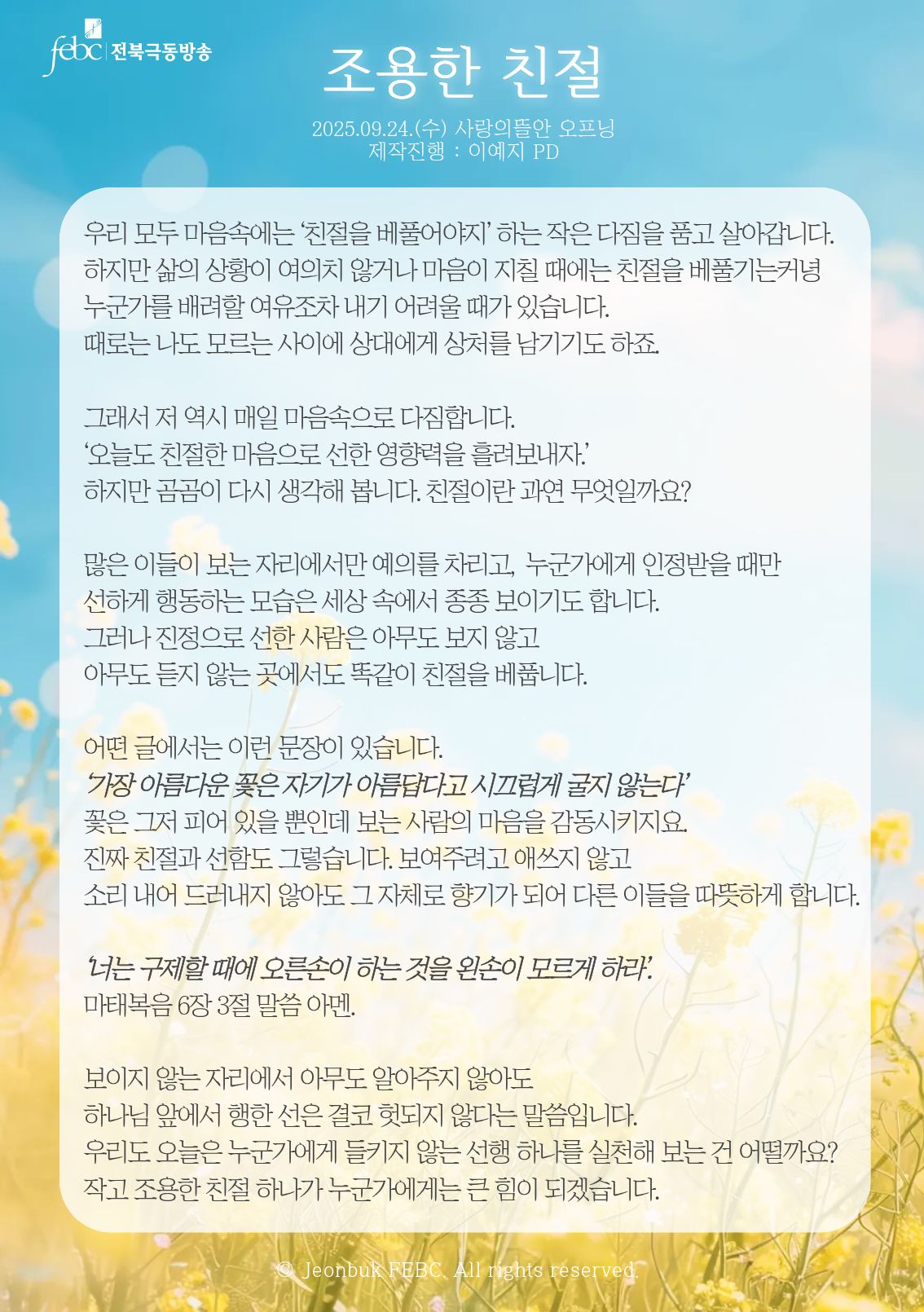 [전북] 25.09.24.(수) 사랑의뜰안 오프닝 "조용한 친절"
