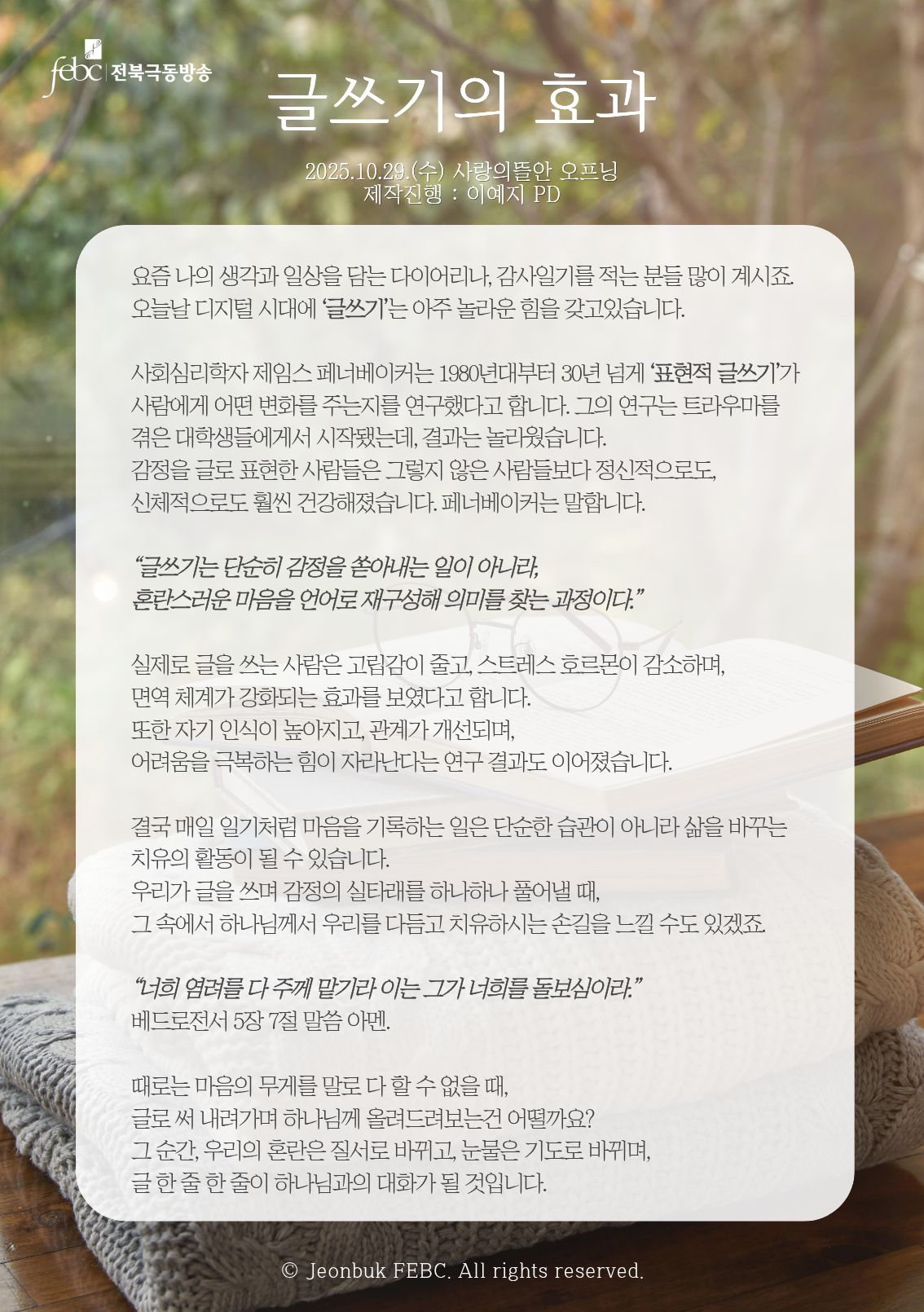 [전북] 25.10.29.(수) 사랑의뜰안 오프닝 "글쓰기의 효과"