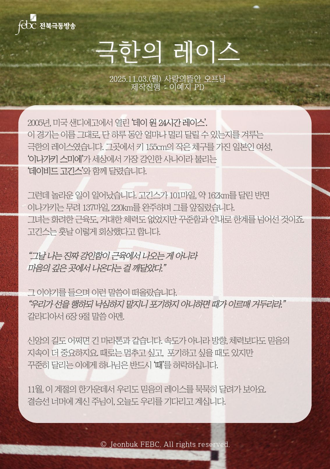 [전북] 25.11.03.(월) 사랑의뜰안 오프닝 "극한의 레이스"