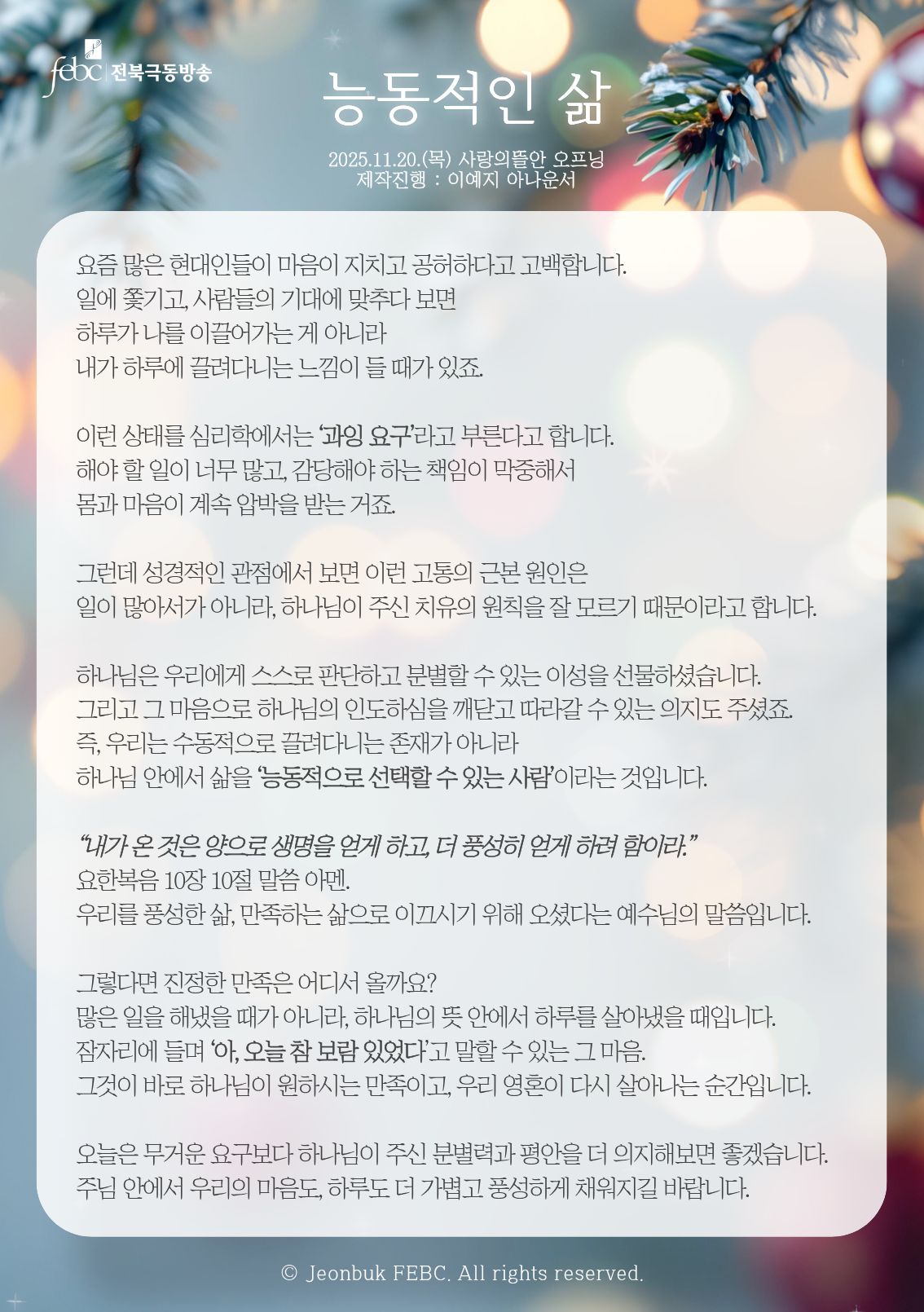 [전북] 25.11.20.(목) 사랑의뜰안 오프닝 "능동적인 삶"
