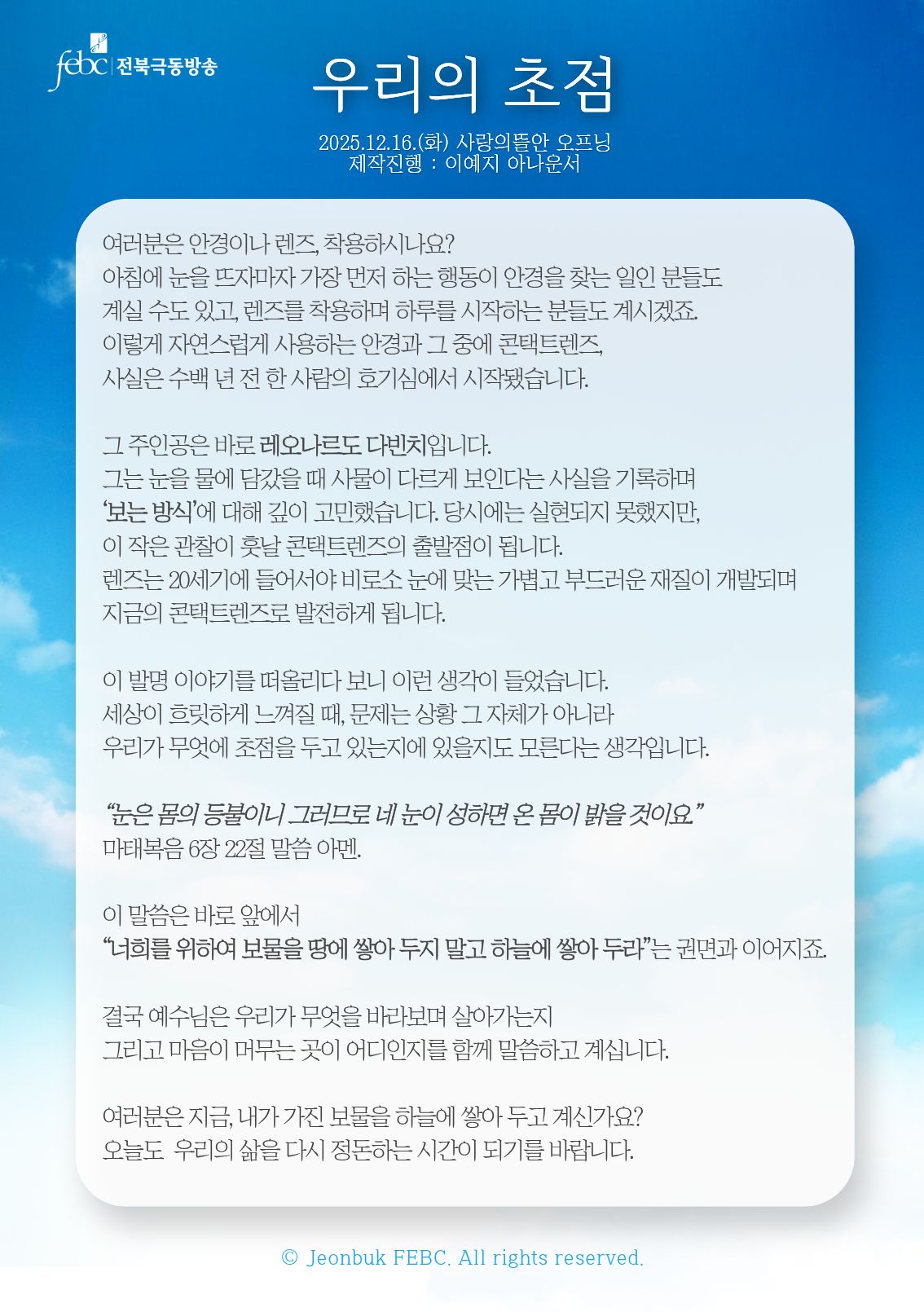 [전북] 25.12.16.(화) 사랑의뜰안 오프닝 "우리의 초점"