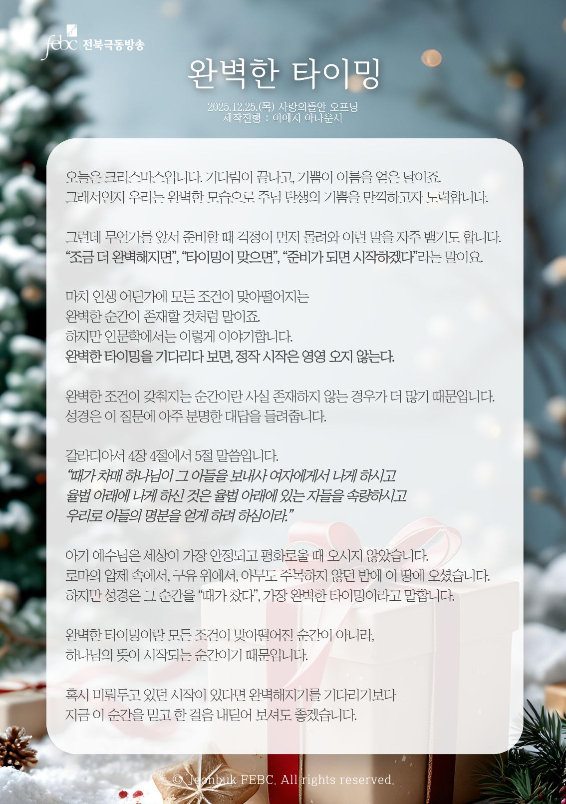 [전북] 25.12.25.(목) 사랑의뜰안 오프닝 "완벽한 타이밍"