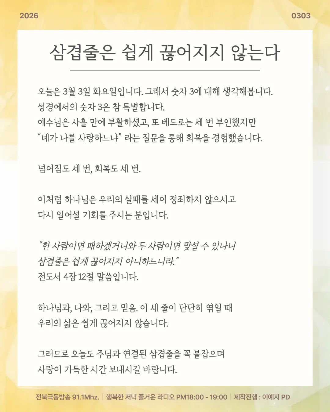 전북극동방송 행복한 저녁 즐거운 라디오!