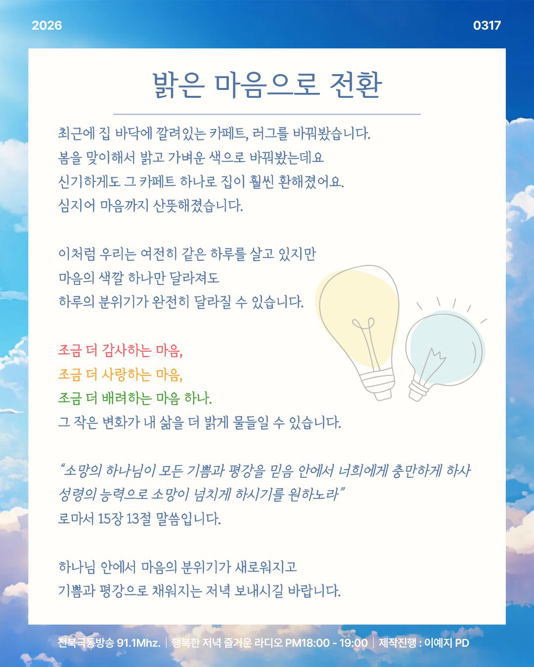 전북극동방송 행복한 저녁 즐거운 라디오!