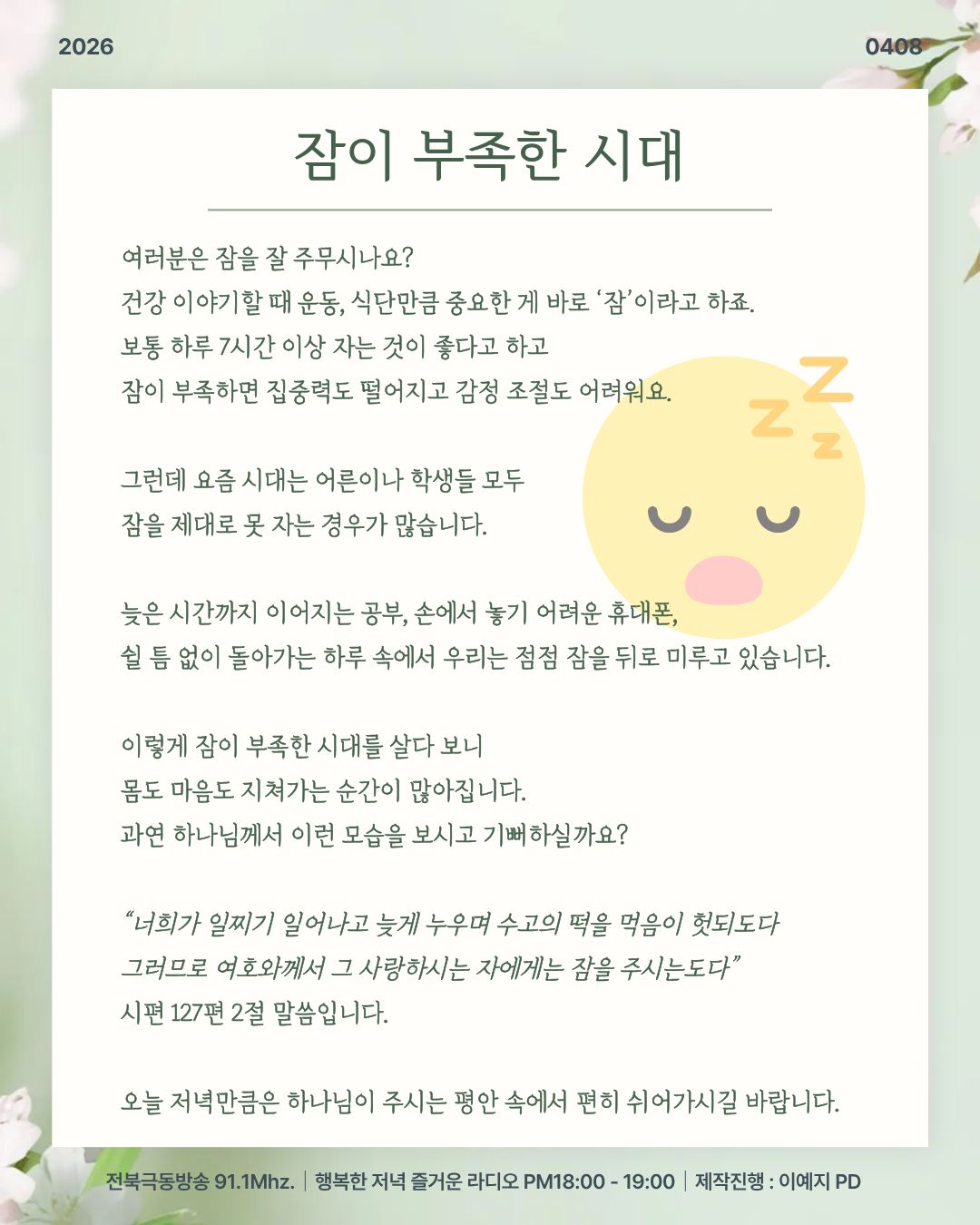 전북극동방송 행저즐라 오프닝 [ 잠이 부족한 시대 ]