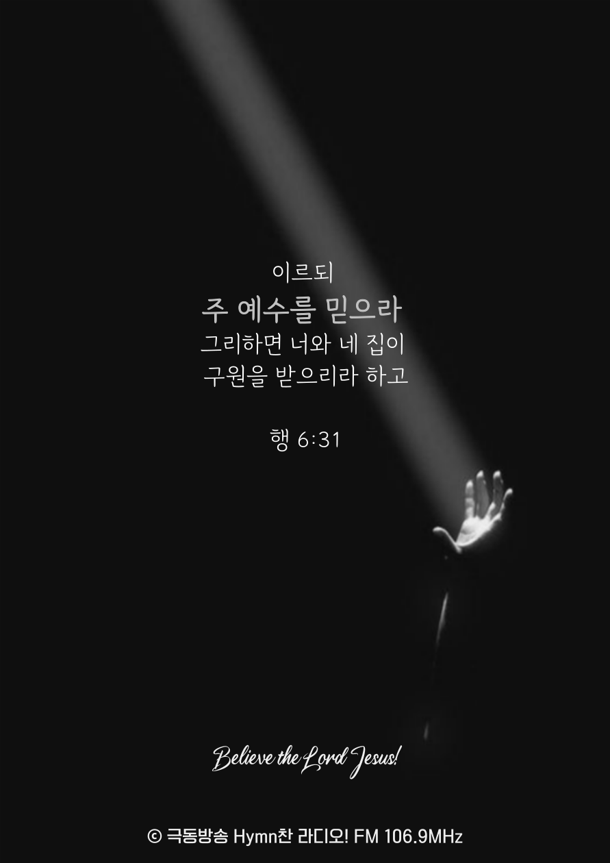 주 예수를 믿으라! 그리하면 너와 네 집이 구원을 받으리라!