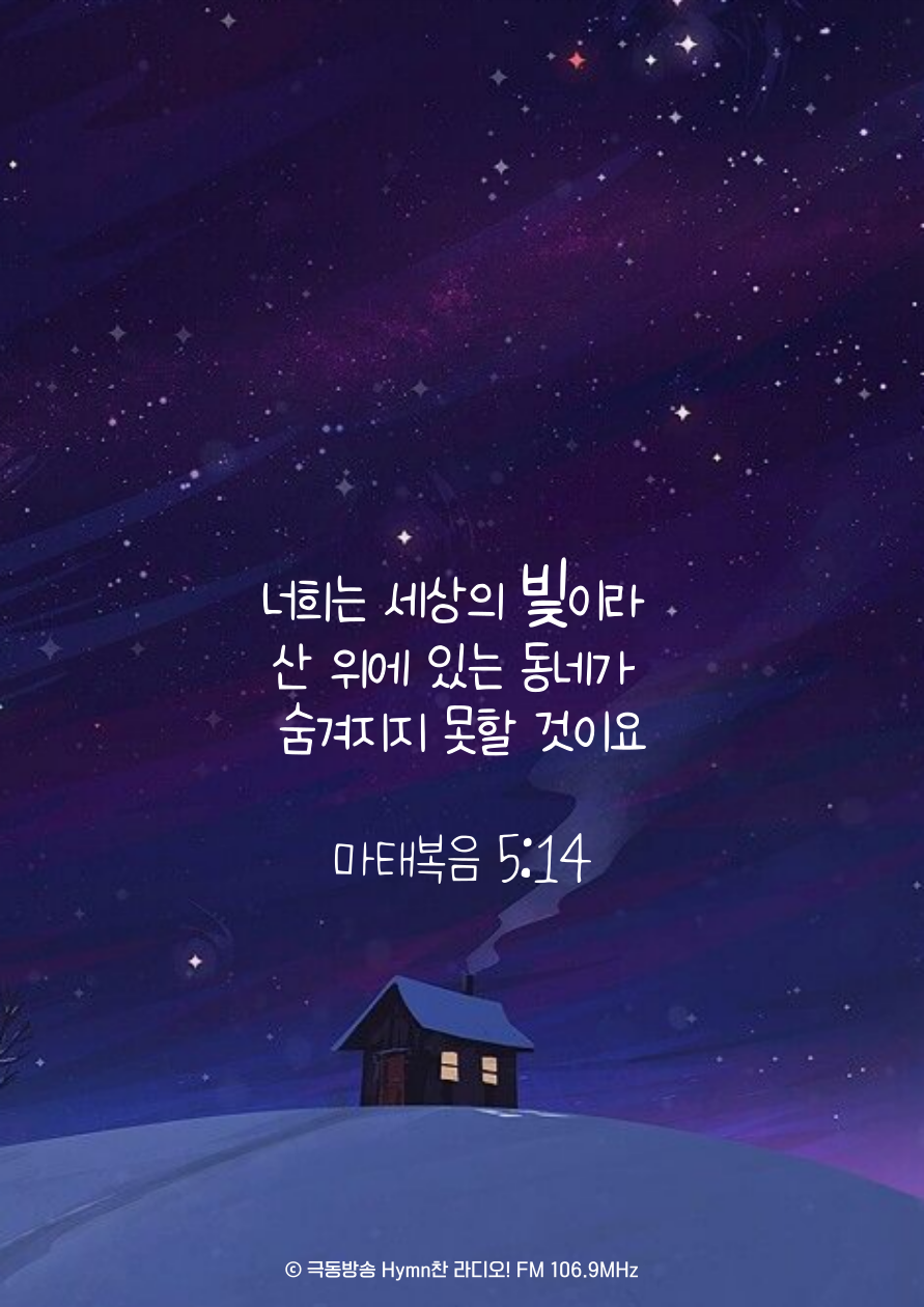 너희는 세상의 빛이라 산 위에 있는 동네가 숨겨지지 못할 것이요