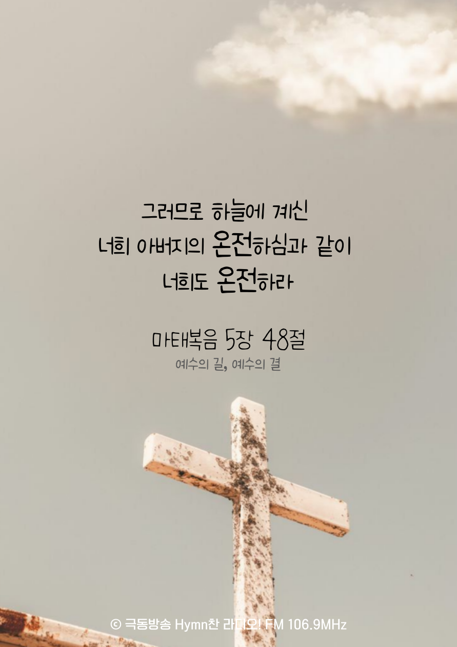 그러므로 하늘에 계신 너희 아버지의 온전하심과 같이 너희도 온전하라