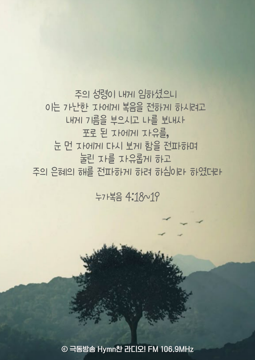할렐루야! 누가복음 4장 18절에서 19절까지의 말씀입니다.