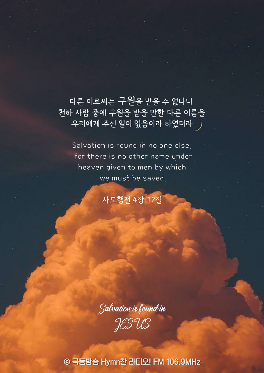 사도행전 4장 12절 말씀입니다. 아멘!
