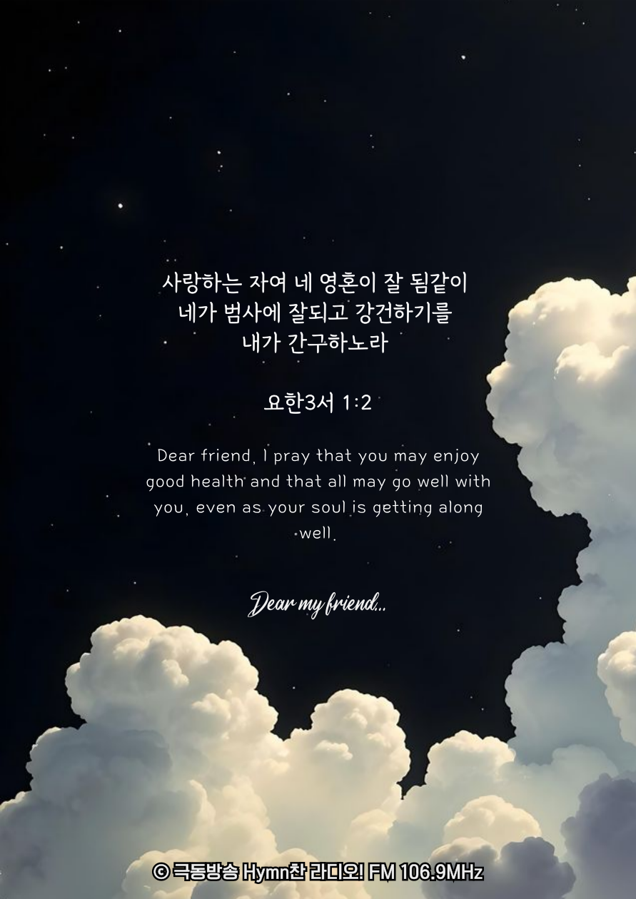 사랑하는 자여 네 영혼이 잘 됨같이 네가 범사에 잘되고 강건하기를 내가 간구하노라