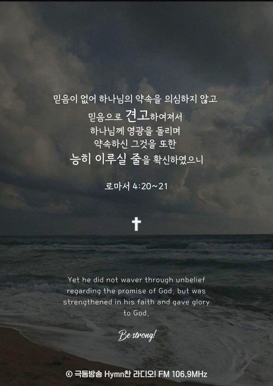 로마서 4장 20~21절 말씀입니다. 아멘!